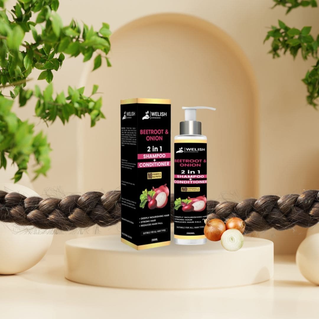 Beetroot Onion Shampoo with Conditioner is a natural and effective way to promote hair growth, reduce hair fall, and strengthen hair. The shampoo gently cleanses the scalp and hair without stripping away essential oils. The conditioner hydrates and nourishes the hair, leaving it soft, smooth, and manageable.
